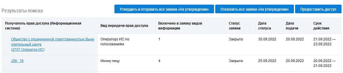 Поиск заявок на предоставление прав доступа