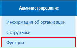 Войдите в личный кабинет организации. Нажмите на пункт горизонтального навигационного меню Администрирование и выберите пункт Функции.