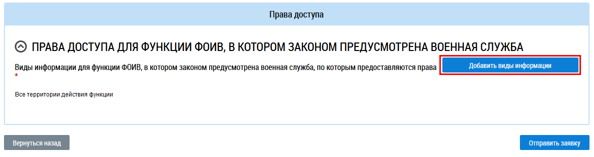 Рис. 3. Блок «Права доступа», кнопка «Добавить виды информации»