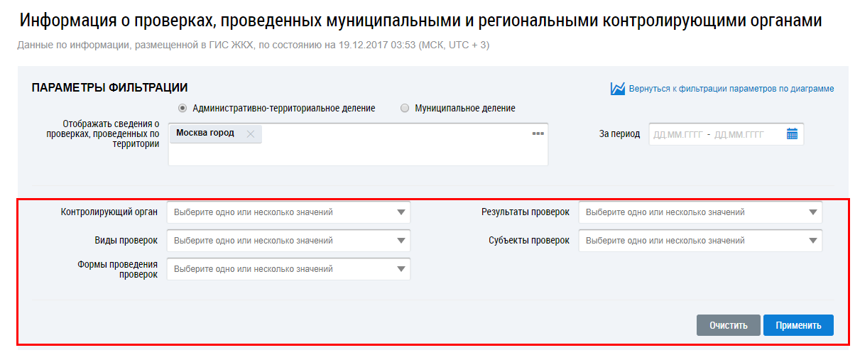 Для отображения сведений о проверках, проведенных по определенным территориям, нажмите на кнопку