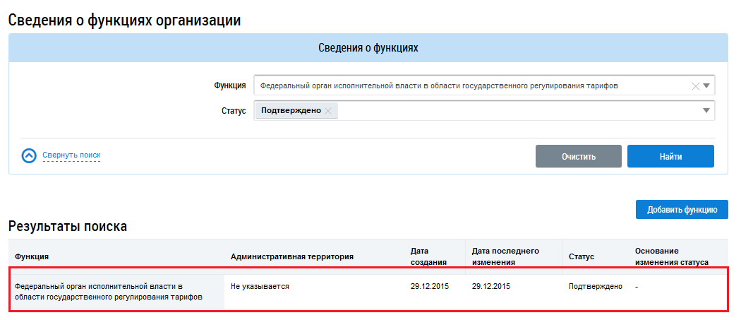 Рис. 2. Страница «Сведения о функциях организации». Блок результатов поиска
