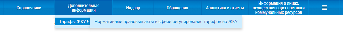 Раздел Дополнительная информация содержит информацию о нормативных правовых актах в сфере регулирования тарифов на ЖКУ.