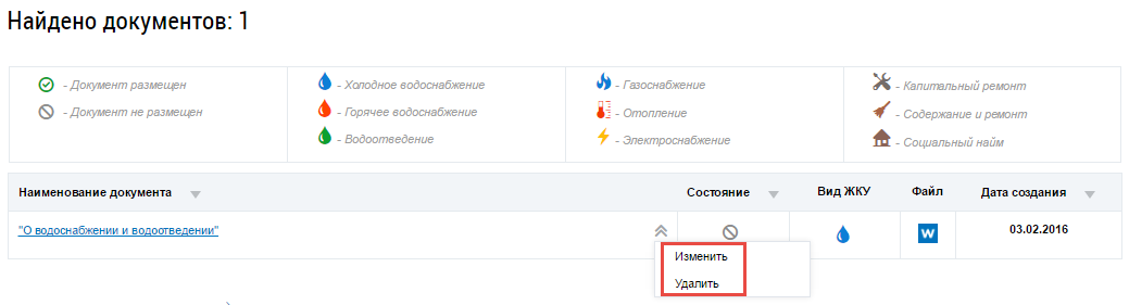 Операция удаления доступна для неразмещенного нормативного правового акта. Для удаления нормативного правового акта в сфере регулирования тарифов выберите пункт контекстного меню Удалить. Подтвердите удаление.