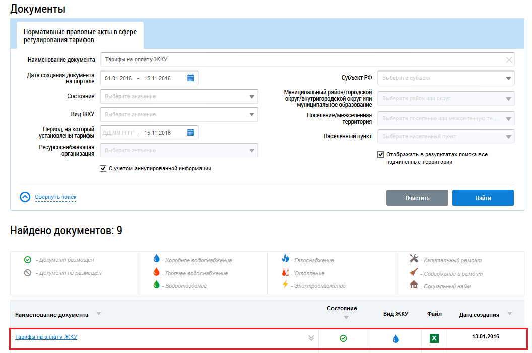 Поиск нормативных правовых актов в сфере регулирования тарифов