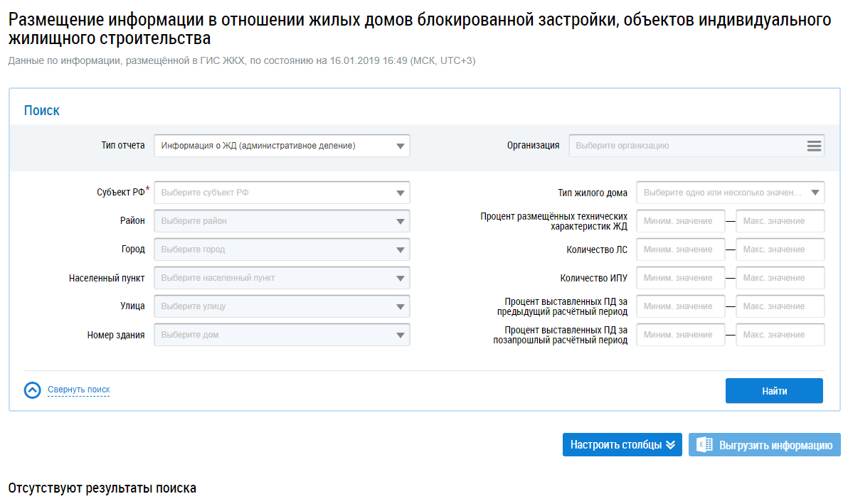 Данный раздел доступен после предоставления представителю организации права доступа Размещение информации в отношении жилых домов блокированной застройки, объектов индивидуального жилищного строительства. Для получения необходимых прав обратитесь к Администратору организации.