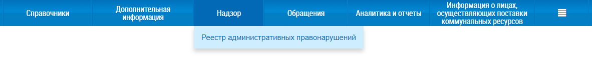 При нажатии на пункт горизонтального навигационного меню Надзор отображается контекстное меню раздела.