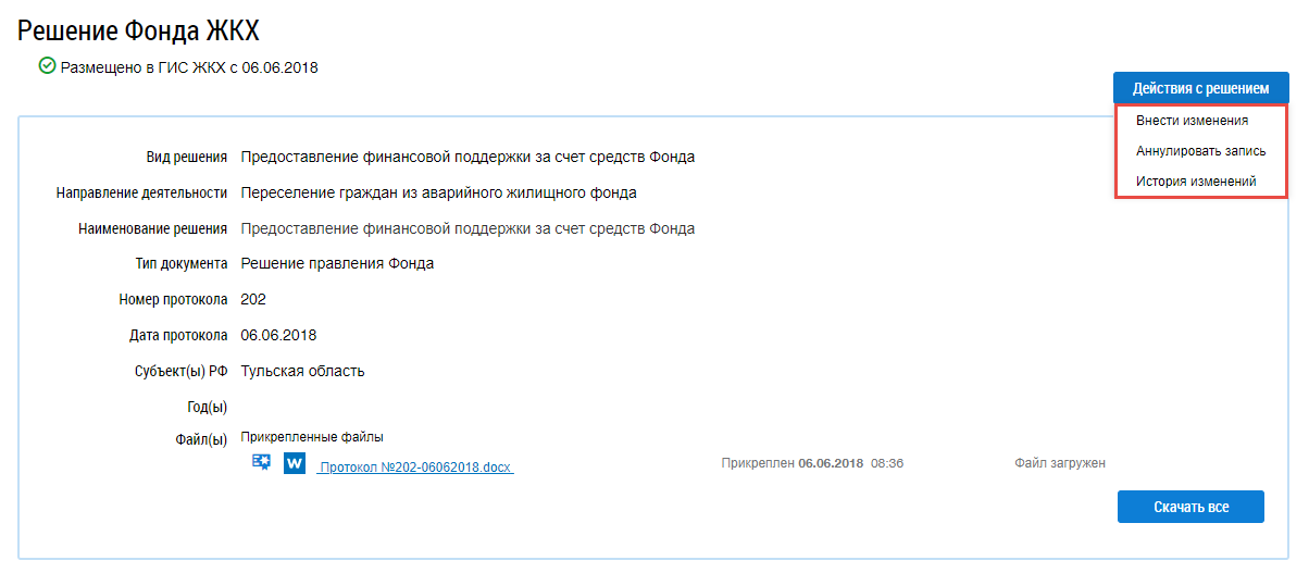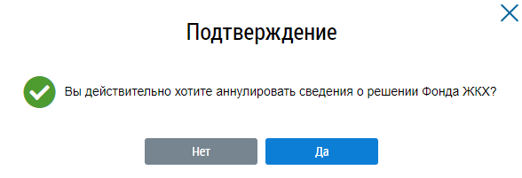 Аннулирование решения Фонда ЖКХ доступно для размещенного решения в режиме просмотра.