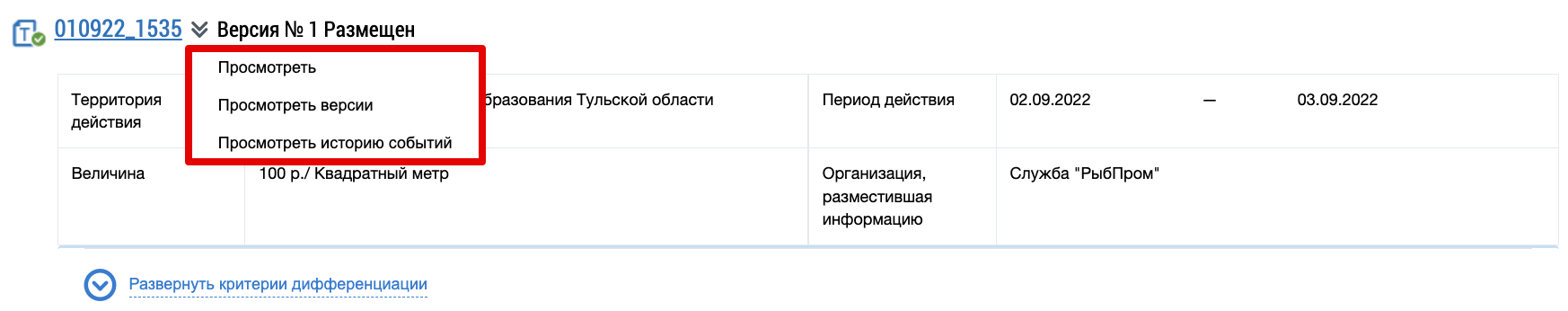 Для просмотра минимального размера взноса на капитальный ремонт раскройте контекстное меню и выберите пункт Просмотреть.