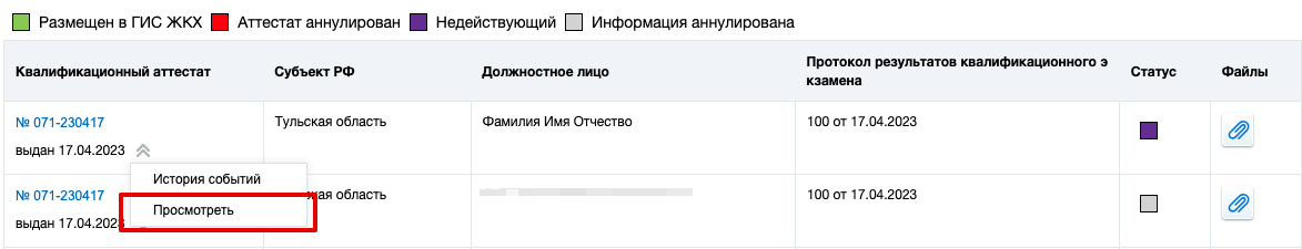Просмотр квалификационного аттестата