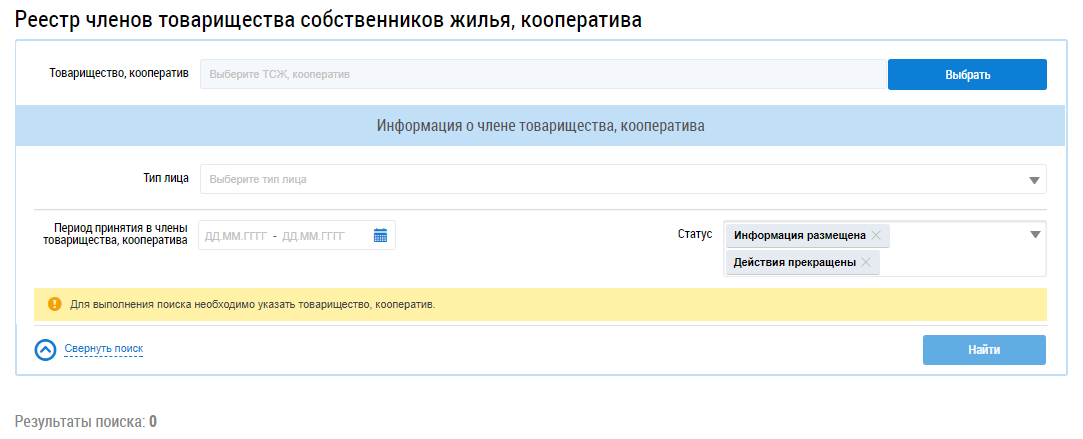 Данный раздел доступен после предоставления представителю организации права доступа «Контроль за размещением информации о членах ТСЖ, кооператива». Для получения необходимых прав обратитесь к Администратору организации.