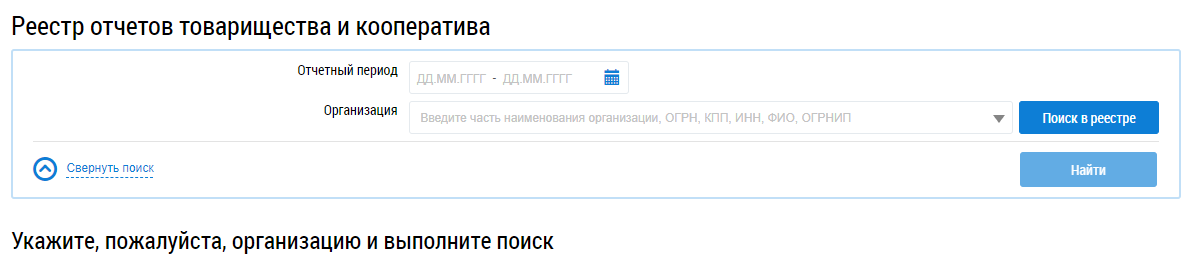 Отображается страница Реестр отчетов товарищества и кооператива.