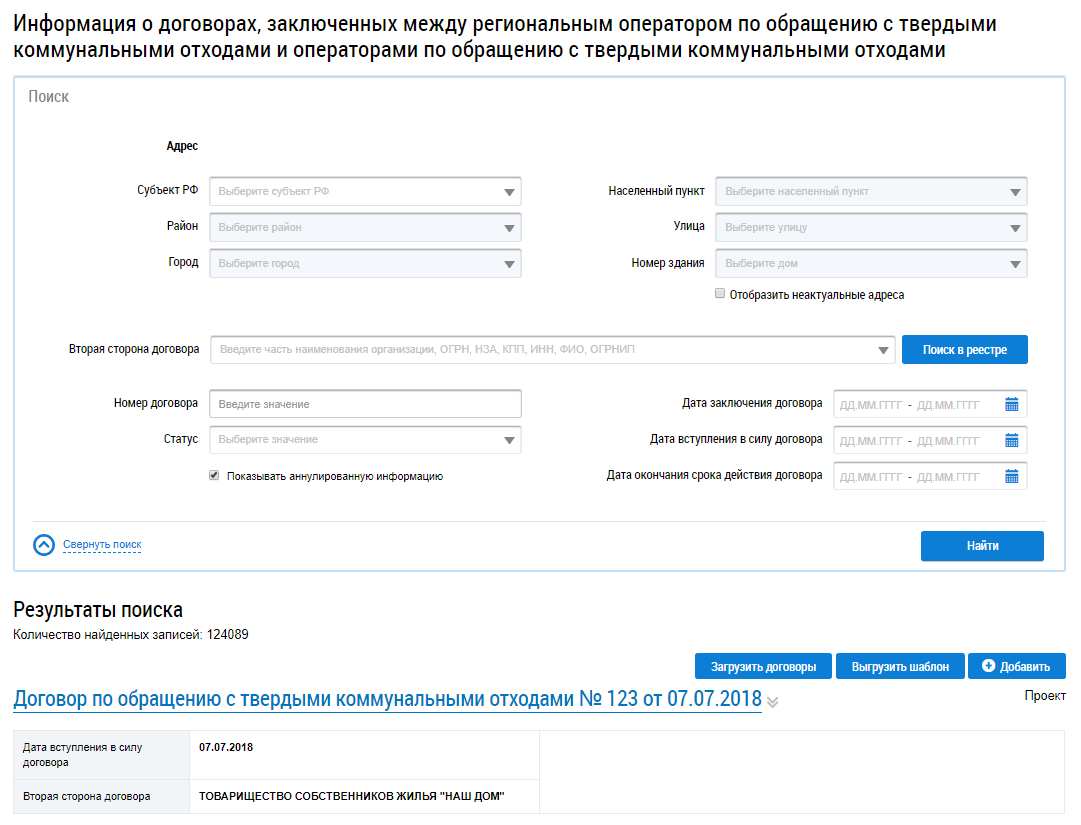 Данный раздел доступен после предоставления сотруднику права доступа «Контроль за размещением информации о договорах по обращению с твердыми коммунальными отходами». Для предоставления данного права доступа обратитесь к Администратору организации.