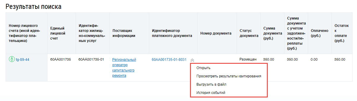Просмотр платежного документа