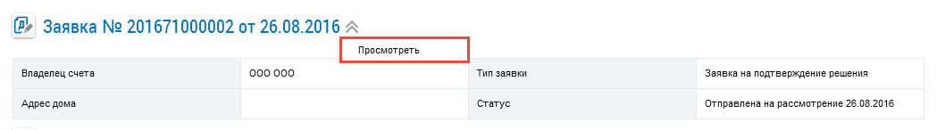 Для просмотра заявки на подтверждение решения выберите пункт контекстного меню заявки Просмотреть.