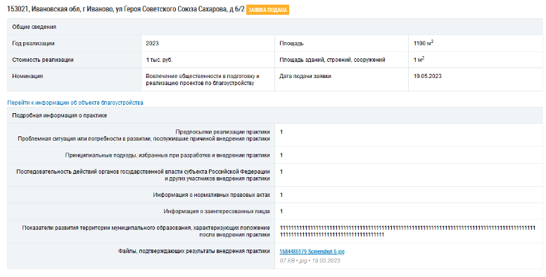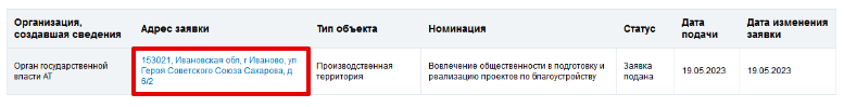 Для просмотра информации по лучшей практики в результатах поиска нажмите на Адрес заявки.