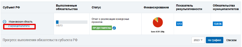 Рис. 4. Ссылка перехода к просмотру информации по муниципалитетам