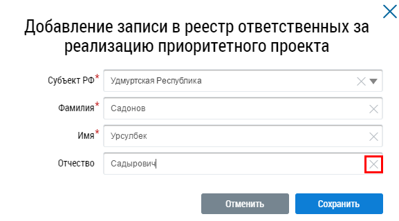в конце данного поля. Для очистки всех полей нажмите на кнопку