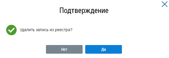 Для подтверждения удаления нажмите на кнопку Да, для отмены нажмите на кнопку Нет.