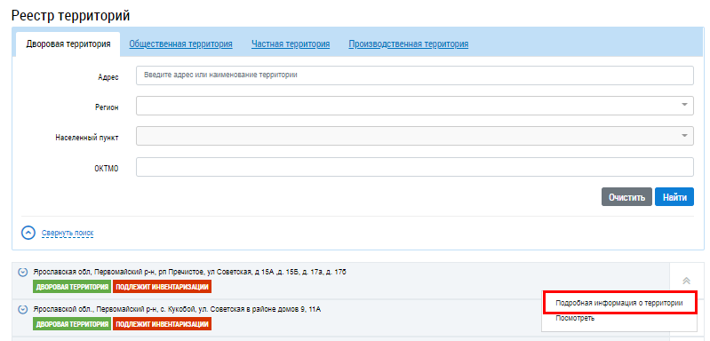 Для перехода на страницу Конструктор нажмите выберите пункт контекстного меню Подробная информация о территории.