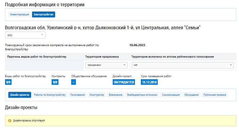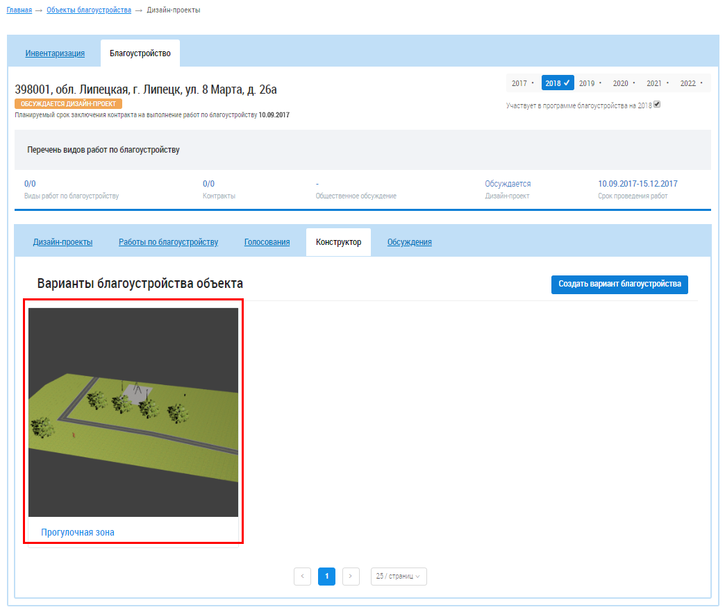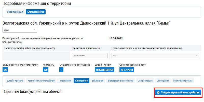 Отображается страница создания варианта благоустройства.