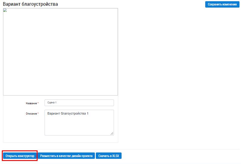 Введите название и описание варианта благоустройства, затем нажмите на кнопку Сохранить изменения.
