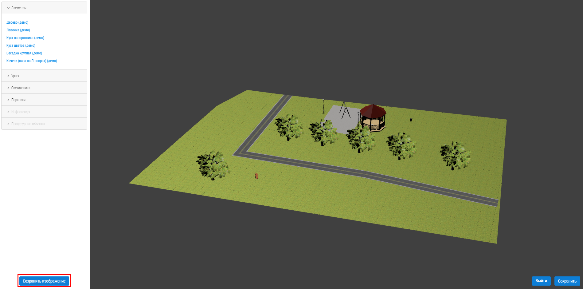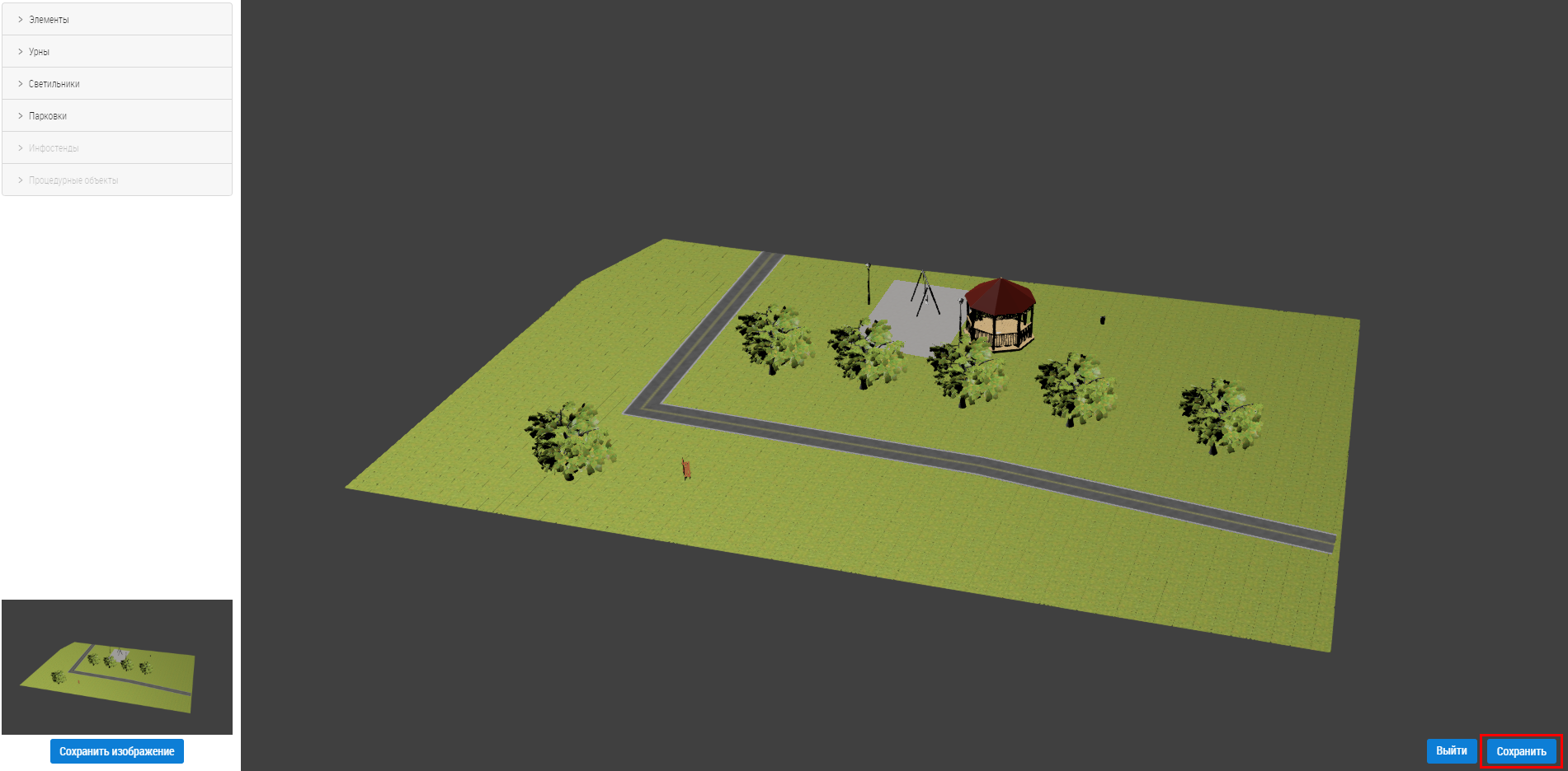 Созданный вариант благоустройства отображается на вкладке Конструктор.