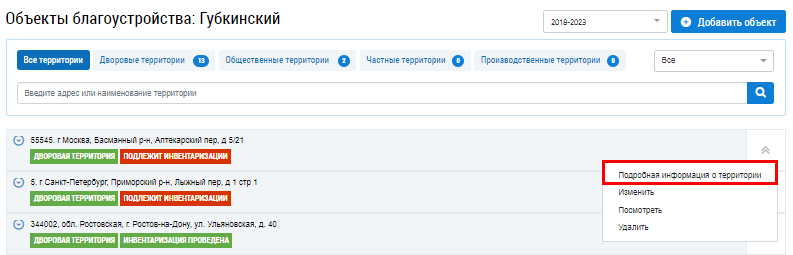 Рис. 1. Пункт контекстного меню «Подробная информация о территории»