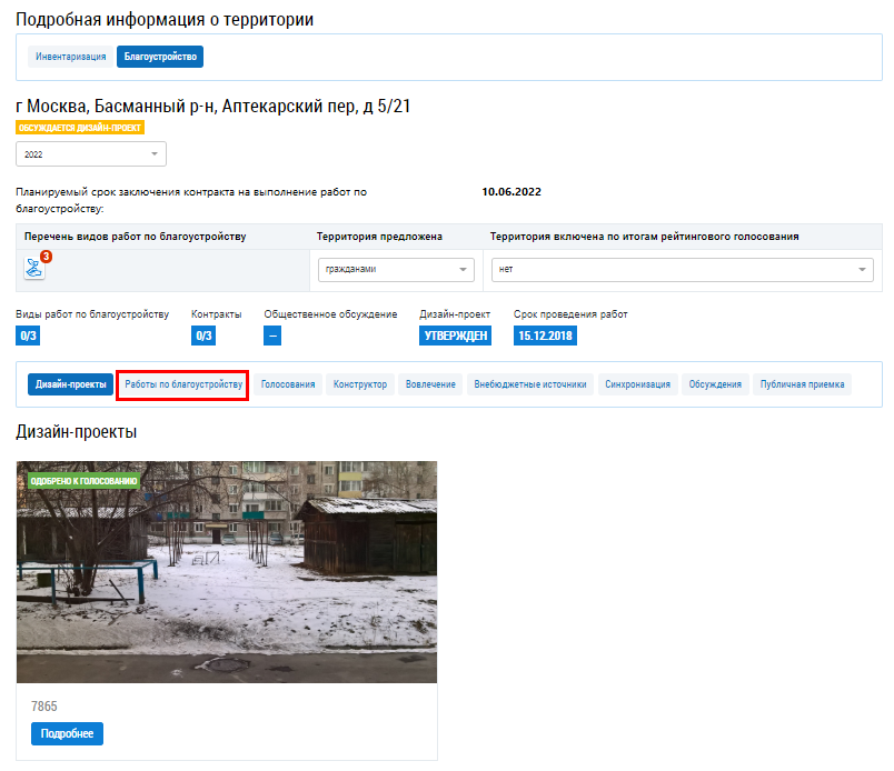 Для перехода на вкладку Работы по благоустройству выберите пункт контекстного