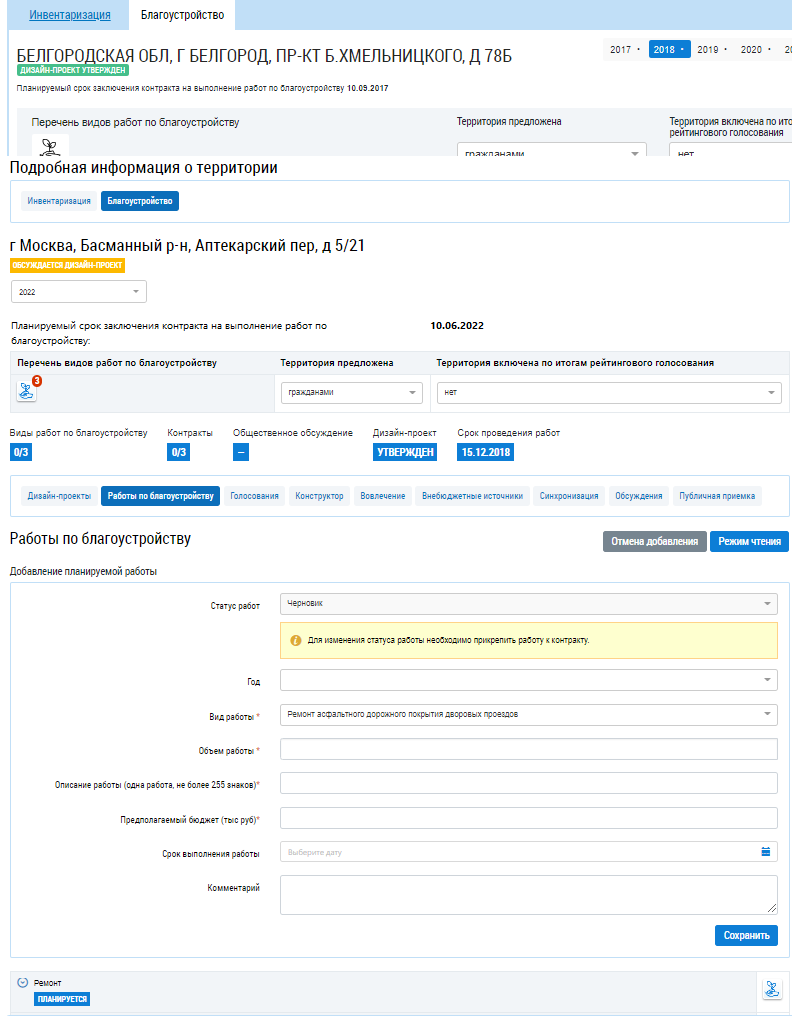 Рис. 5. Карточка для заполнения работ по благоустройству