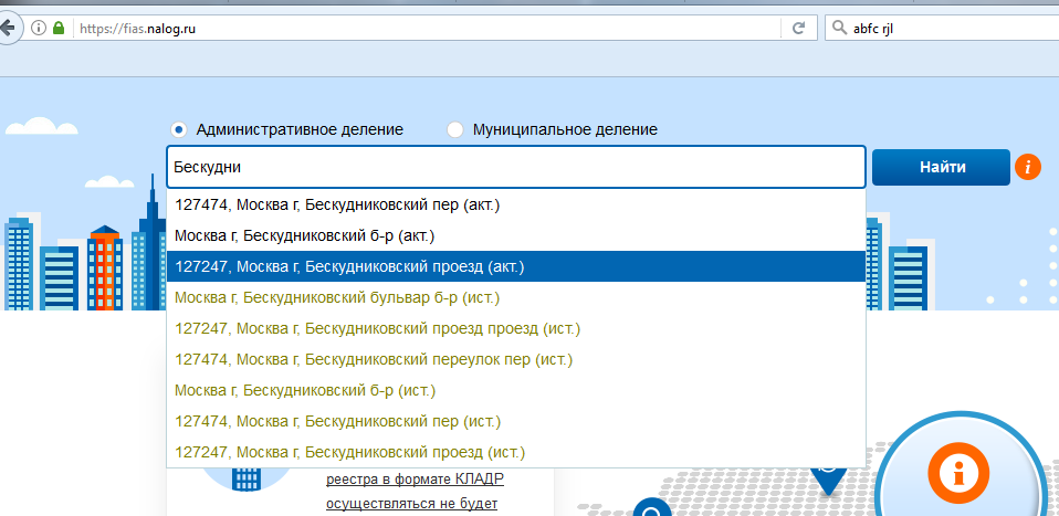Для получения ФИАС-кодов домов, прилегающих к дворовой территории, необходимо перейти в федеральную информационную адресную систему по ссылке https://fias.nalog.ru/.