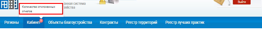В правом верхнем углу на вкладке Кабинет отображается количество отчетов, по которым получены замечания от субъекта РФ. При наведении на количество отчетов отображается всплывающая подсказка.