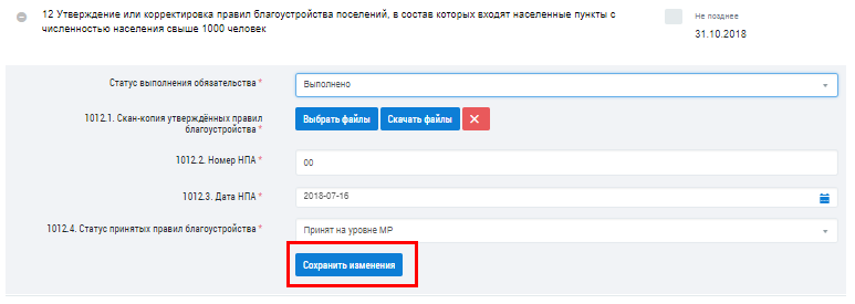 Редактирование отчетов в статусе Выполнено и с проставленной отметкой о принятии вышестоящим органом