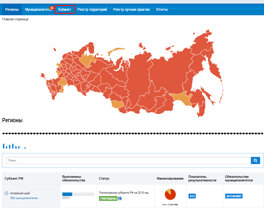 В правом верхнем углу на вкладке Кабинет отображается количество отчетов, по которым получены замечания от Министерства строительства и жилищно-коммунальных услуг РФ.