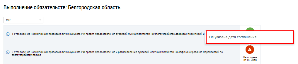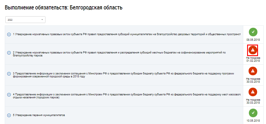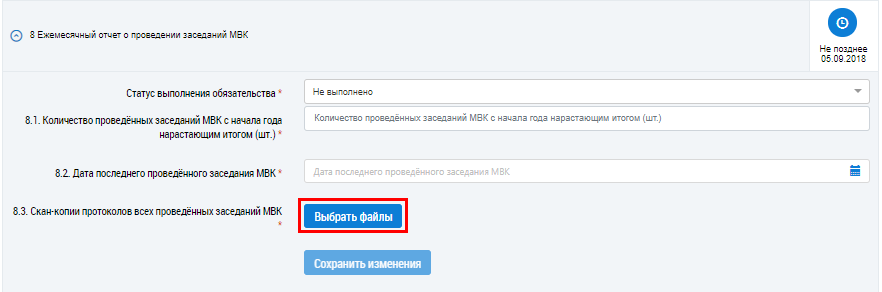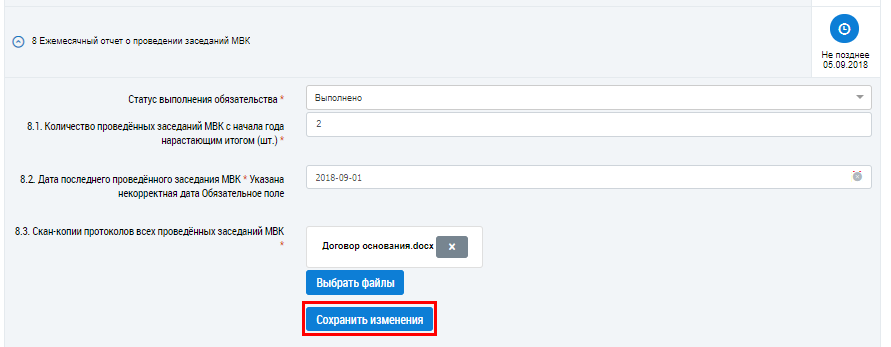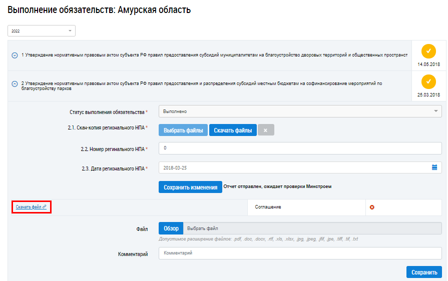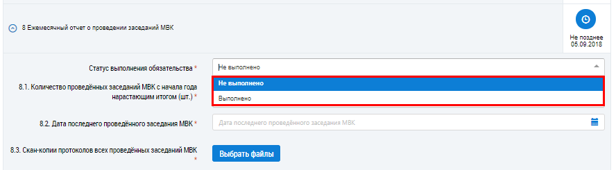 После просмотра отчета заполните поле Статус выполнения обязательства, выбрав значение из выпадающего списка: