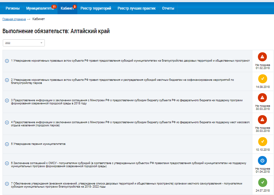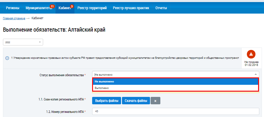 Для заполнения поля Статус выполнения обязательства выберите значение из выпадающего списка: