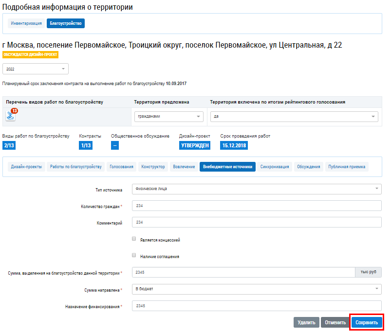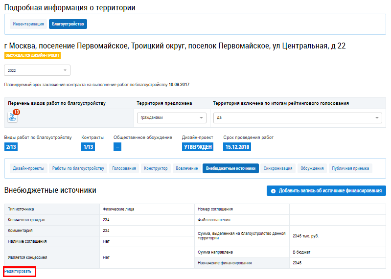 Для редактирования записи об источнике финансирования нажмите на гиперссылку Редактировать.