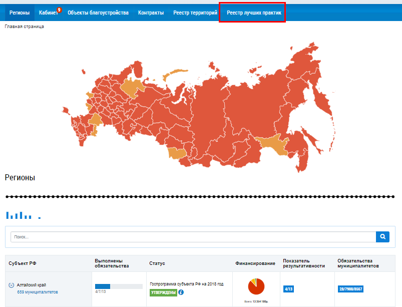 Рис. 2. Страница «Реестр лучших реализованных практик формирования комфортной городской среды»