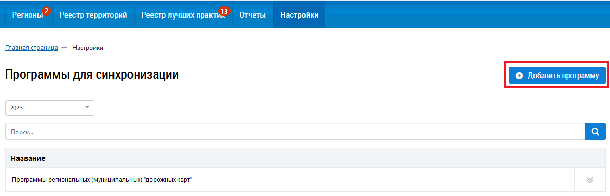 Для добавления новой программы для синхронизации нажмите на кнопку Добавить программу.