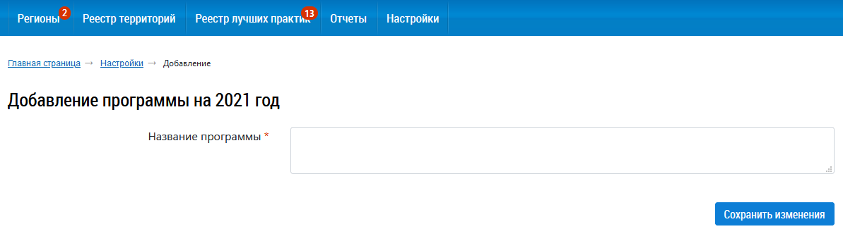 Заполните поле Название программы и нажмите на кнопку Сохранить изменения.