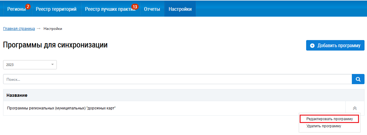 Для редактирования программы раскройте контекстное меню программы и выберите пункт Редактировать программу.