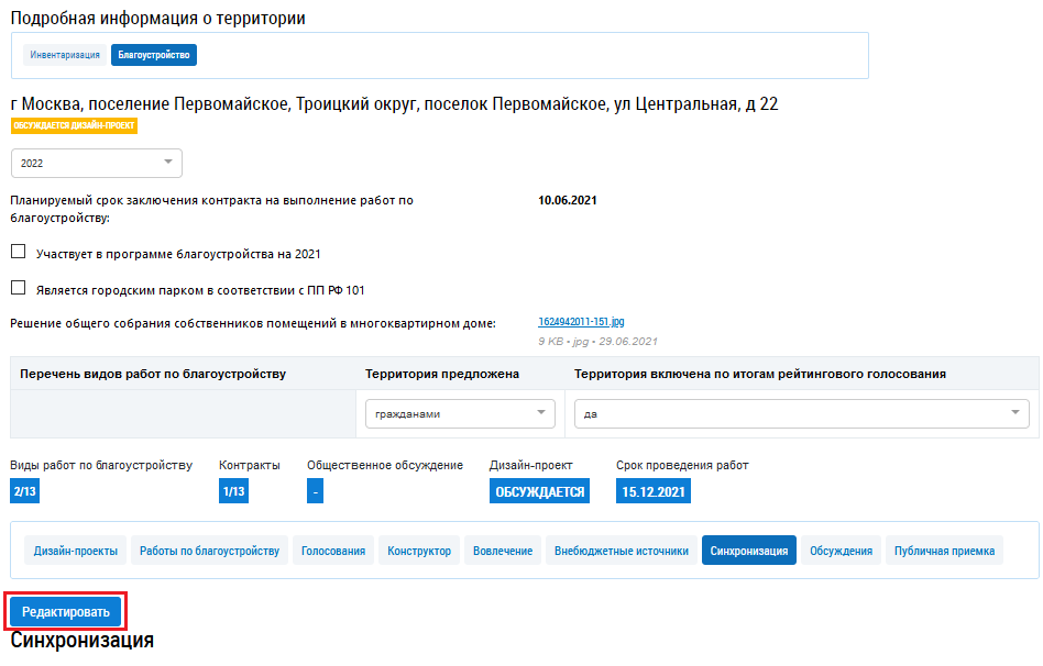 Перейдите на вкладку Синхронизация. На отобразившейся странице нажмите на кнопку Редактировать.