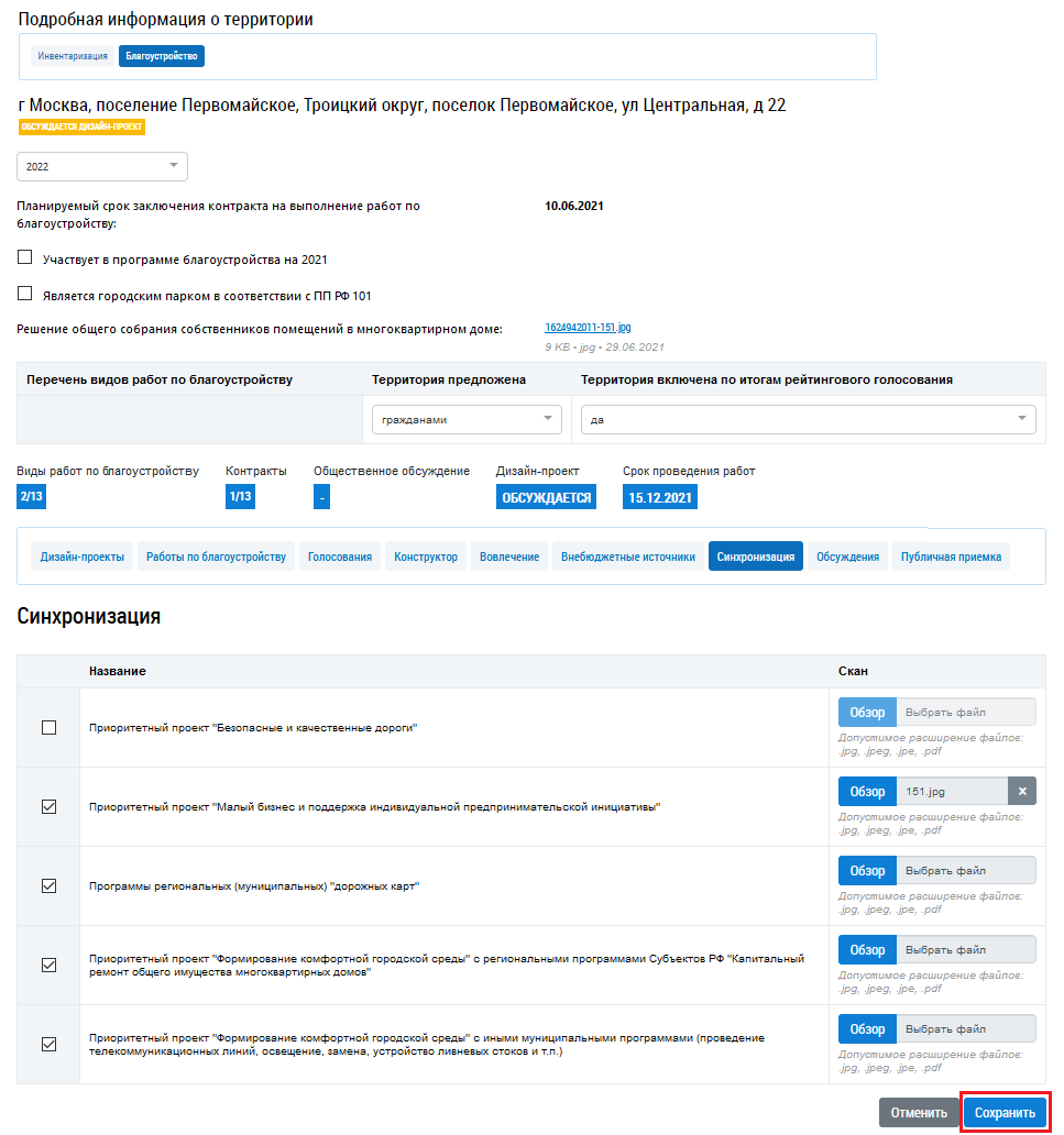 Предоставляется возможность указать, в каких еще приоритетных проектах участвует объект.