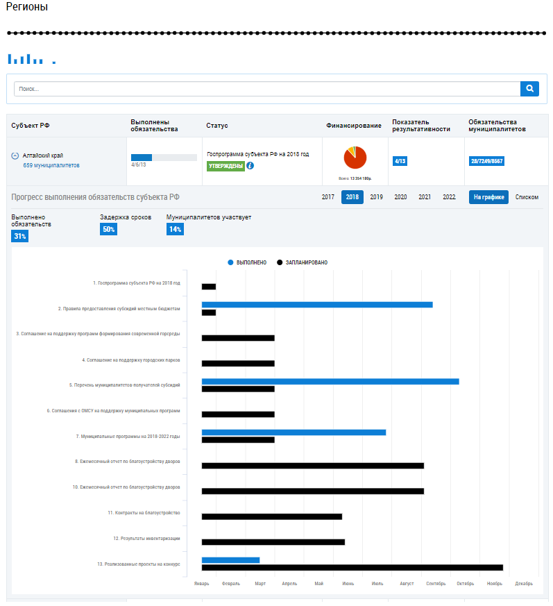 Отображается блок Прогресс выполнения обязательств по конкретному региону.