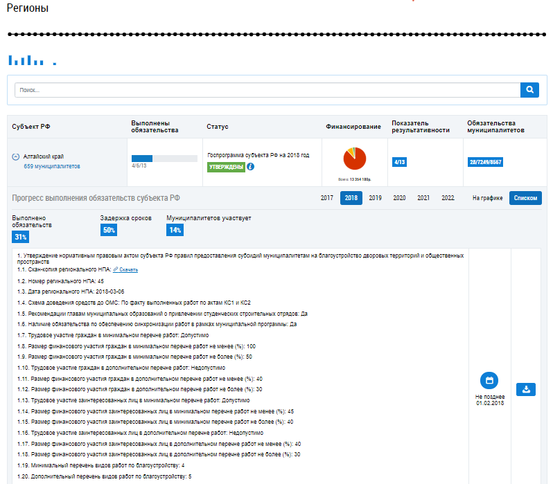 Под шкалой находится таблица с подробной информацией о каждом субъекте РФ и обязательствах субъекта.