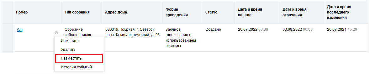 Размещение сообщения о проведении ОСС