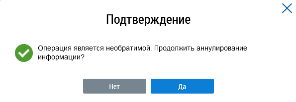 Отображается окно аннулирования информации.