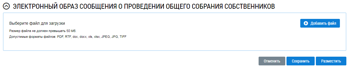 Отображается страница Добавление сообщения о проведении общего собрания собственников.
