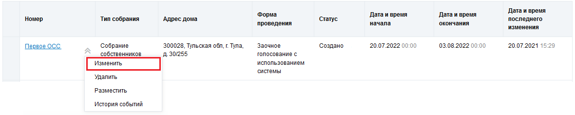 В отобразившемся окне Редактирование сообщения о проведении общего собрания внесите необходимые изменения. Нажмите кнопку Сохранить.