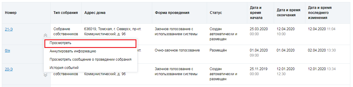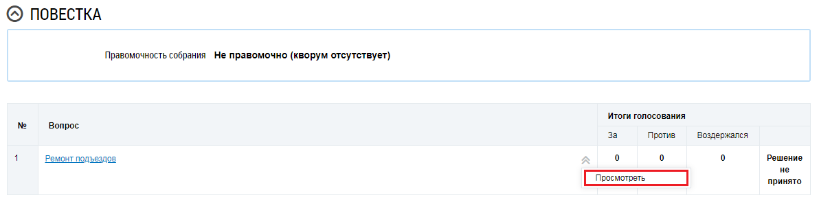 Просмотр протокола общего собрания собственников