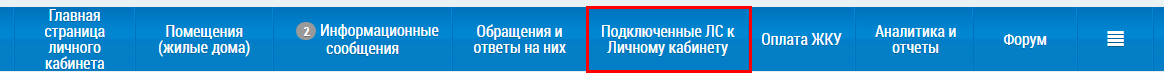 Для просмотра перечня подключенных ЛС плательщика нажмите на пункт Подключенные ЛС к Личному кабинету горизонтального навигационного меню.